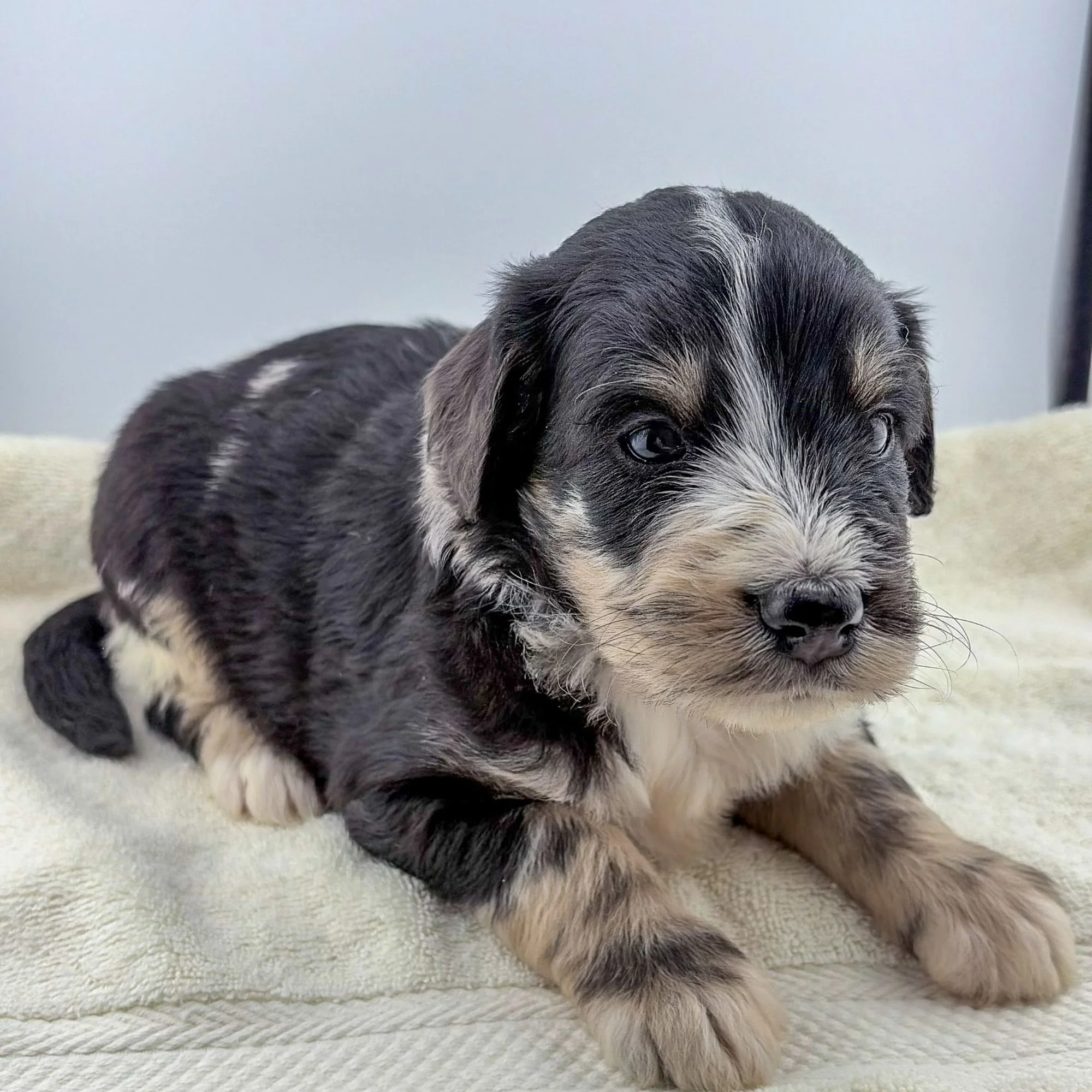 Coats vary from wavy to curly depending on lineage and genetics. Regardless of texture, a Mini Bernedoodle will benefit from routine brushing to prevent tangles and maintain softness. Because shedding is often reduced compared to many breeds, grooming plays a key role in coat health rather than cleanup.